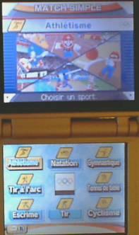 - Match simple (partie rapide) : choix d’un sport parmi 8, puis éventuellement d’une épreuve dans ce sport, puis d’un perso, puis explication de comment ça se joue, puis (enfin) on joue et on a (ou pas) un trophée.