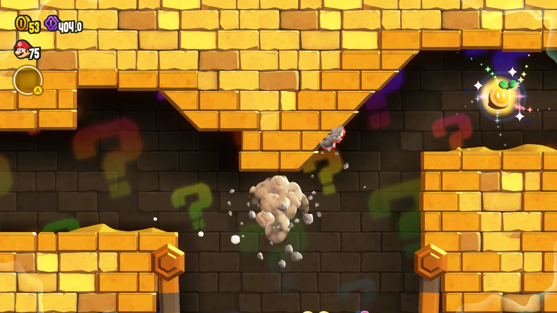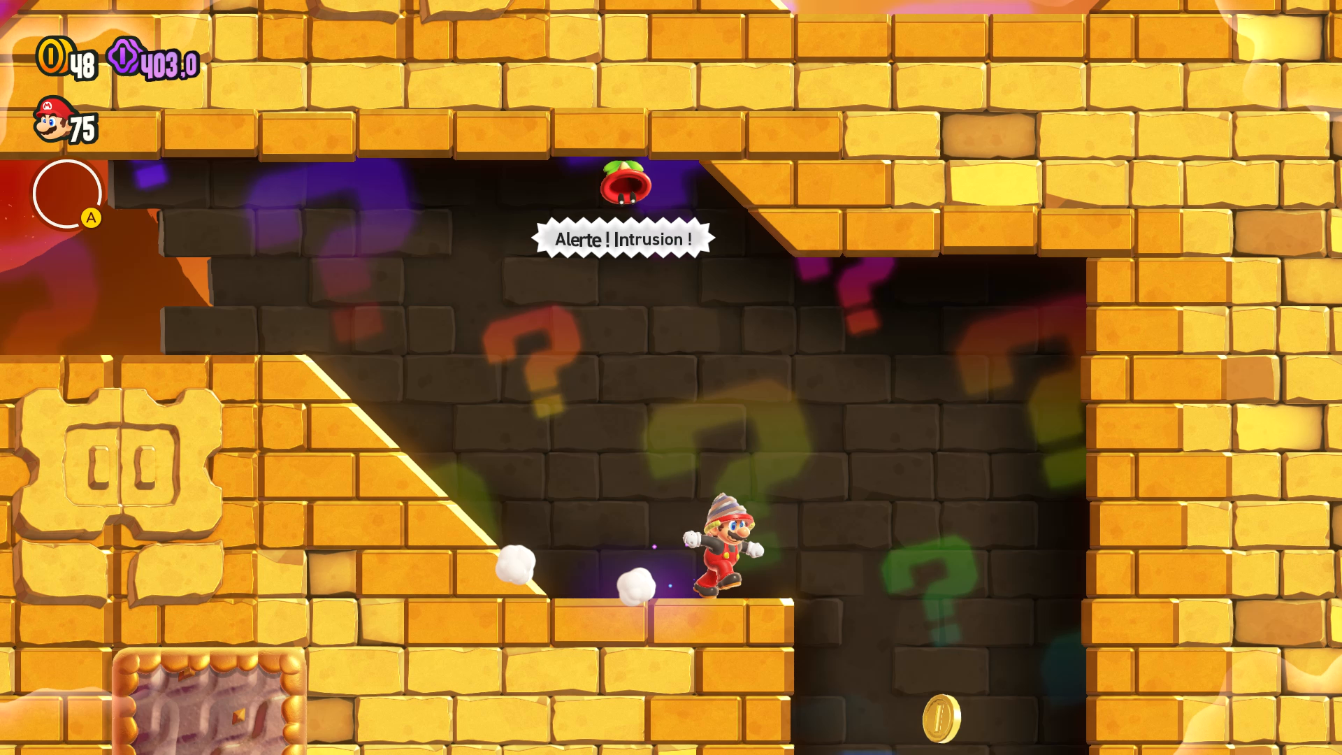 Vous arrivez alors dans une zone sous-terraine avec une immense Momito. Vous avez deux solutions pour atteindre la pièce de 10 fleurs au-dessus d'elle :