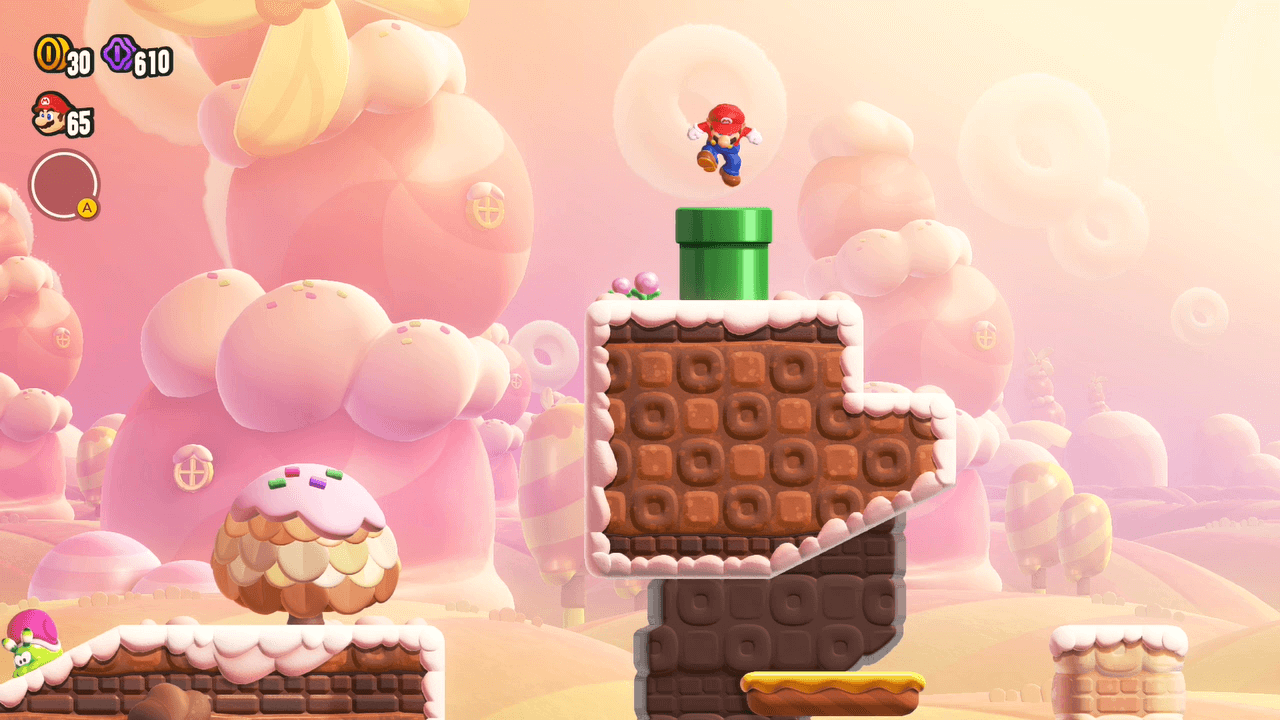 Juste en haut à gauche de la zone où apparait la graine de la fleur prodige est caché un tuyau vert : la dernière grosse pièce est à l'intérieur !