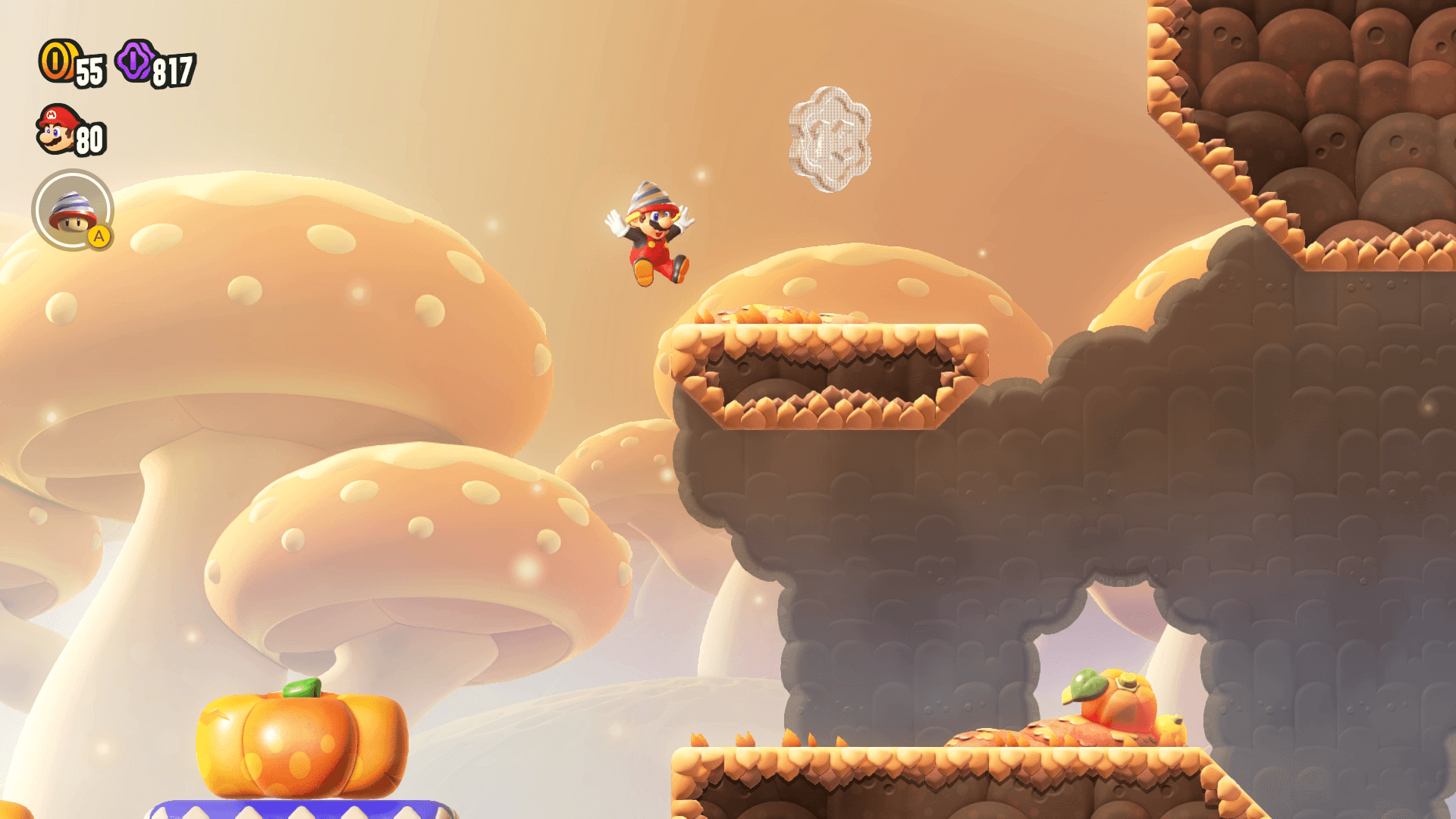 La fleur prodige transforme le niveau en niveau musical ! Dans une ambiance très "Halloween", les courges et les ennemis dansent et rebondissent en rythme.