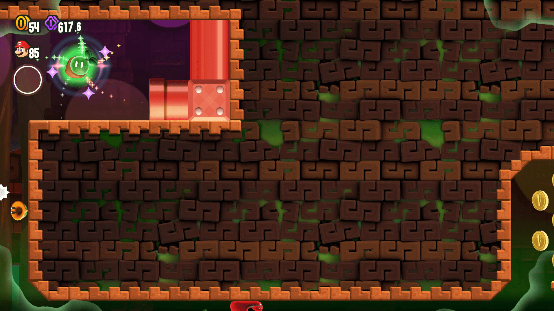 Peu après, un tuyau rouge à l'horizontal se trouve au niveau du sol. Enfoncez-vous dans la gelée pour entrer dans ce tuyau. Il vous dirige dans une zone où vous devez tuer tous les montres de gelée pour faire apparaître la deuxième grosse pièce.