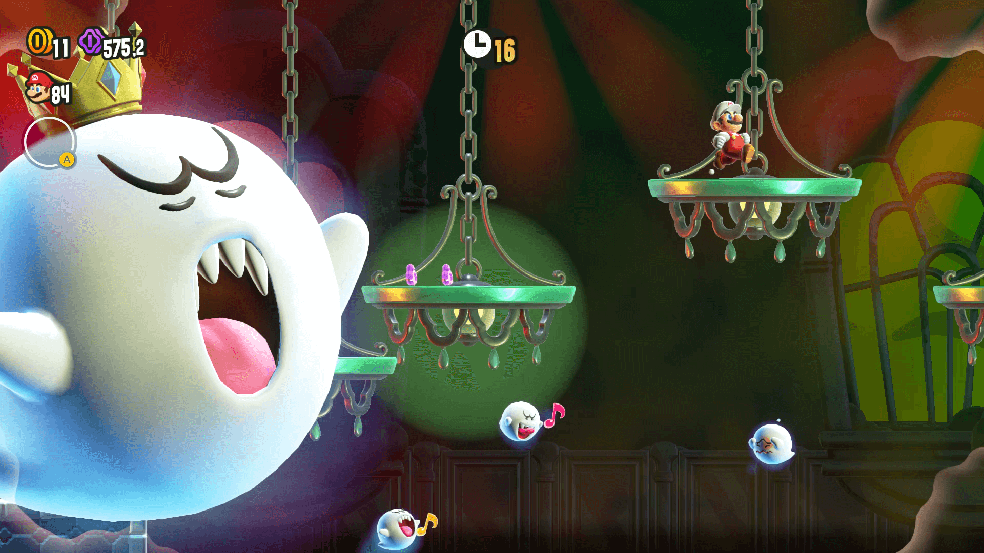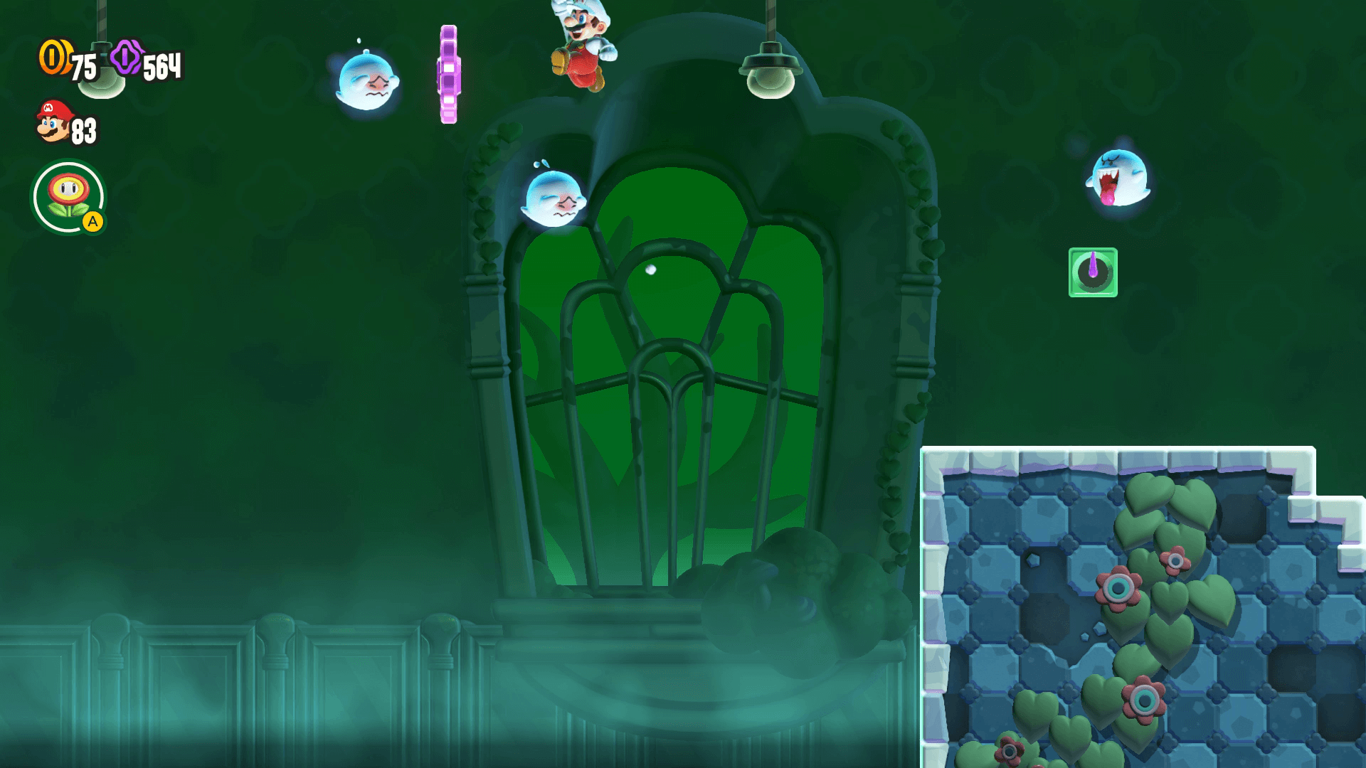 Notez par ailleurs que Super Mario Bros. Wonder est le seul jeu de la série à ne contenir qu'un seul manoir hanté. C'est un peu triste pour les fans des Boos !