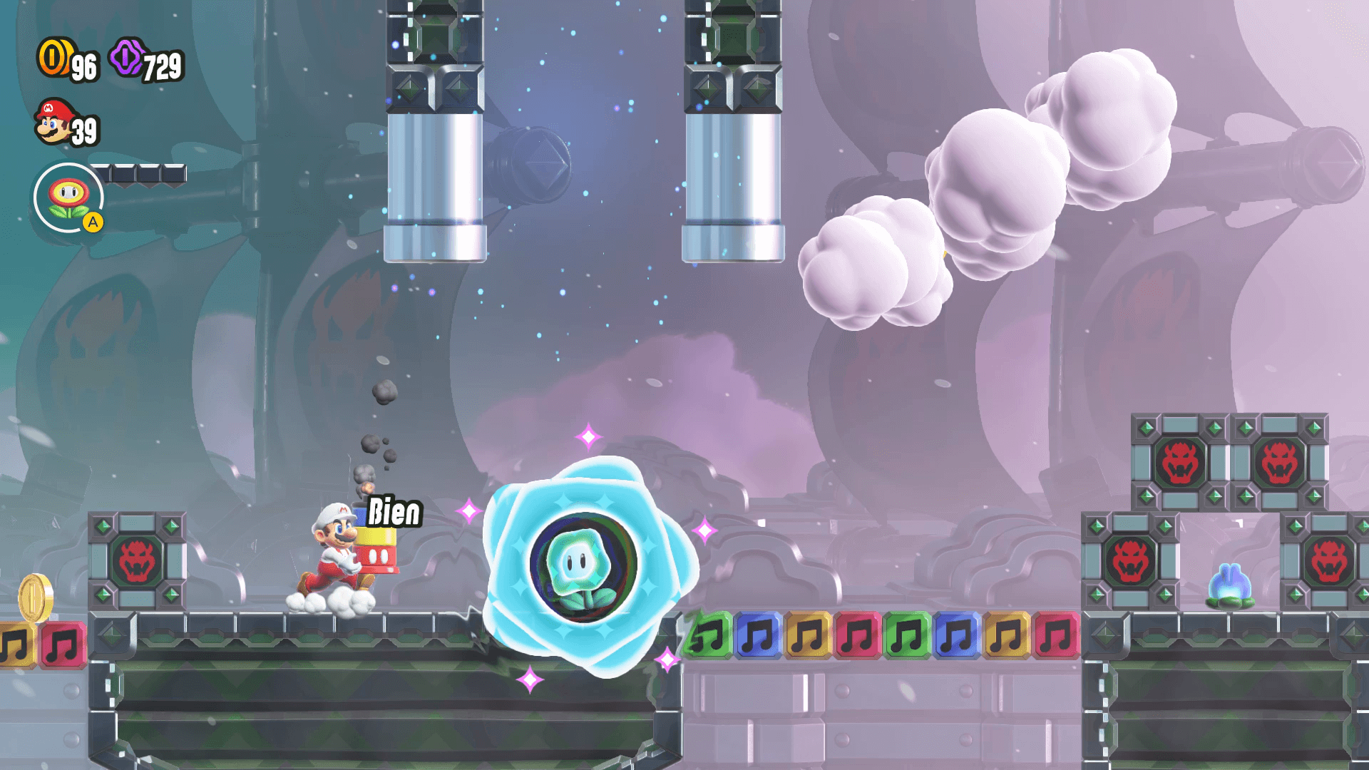 Utilisez les tirs de Bowser pour briser les différents obstacles sur votre chemin, y compris ceux bloquant l'accès à la graine prodige !